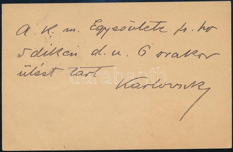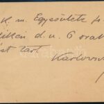 1900 Karlovszky Bertalan (1858-1938) festőművész saját kézzel írt és aláírt levelezőlapja Kézdi Kovács László festő részére, szép állapotban<a href="https://www.darabanth.com/hu/gyorsarveres/415/kategoriak~Mutargy-papirregiseg-egyeb/Alairas~500020/1