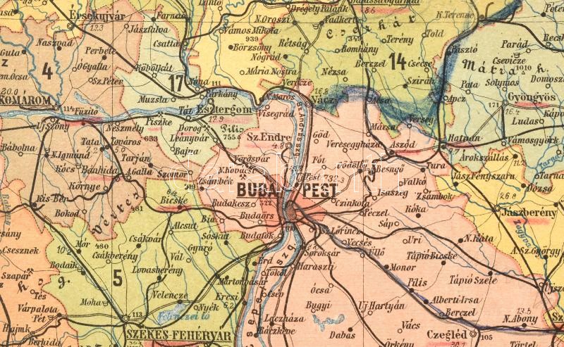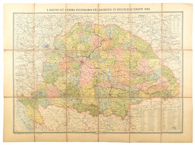 1906 A Magyar Szent Korona országainak közigazgatási és közlekedési térképe 63 x85 cm Vásznon, jó állapotban<a href="https://www.darabanth.com/hu/gyorsarveres/417/kategoriak~Mutargy-papirregiseg-egyeb/Terkepek~30/1906-A-Magyar-Szent-Korona-orszagain