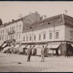 1906 Kolozsvár, Mátyás király tér, üzletek (Tamási Tamás és Fia, Szele Márton, Farkas Antal, Stein Bertalan, Erdélyi Bank), hátoldalán feliratozott fotó, 11×8 cm / Cluj, Mathias Rex square, shops, vintage photo, 11×8 cm<a href="https://www.darabanth
