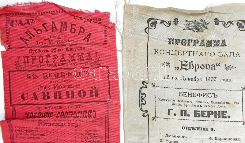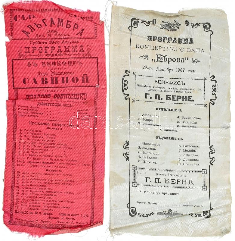 1907 2 db orosz koncert műsor, plakát, szövetre nyomva!. / Russian concert poster on canvas 15×35 cm<a href="https://www.darabanth.com/hu/gyorsarveres/417/kategoriak~Mutargy-papirregiseg-egyeb/Tortenelmi-dokumentumok-keziratok-erdekessegek~20/1907-2