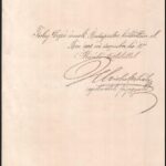 1908 A király személye körüli miniszteri hivataltól érkezett levél a Törley családnak, melyet a Ferenc József által adományozott nemesi címereslevél mellé mellékeltek.<a href="https://www.darabanth.com/hu/nagyaukcio/38/kategoriak~Mutargy-szobor-papi
