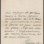 1909 Rákosi Jenő (1842-1929) író, újságíró, színházigazgató, főrendiházi tag francia nyelvű, kézzel írt, saját kézzel aláírt levele a Budapesti Hírlap főszerkesztőjeként, melyben segítséget kér Szakács Andor újságíró