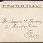 1909 Rákosi Jenő (1842-1929) író, újságíró, színházigazgató, főrendiházi tag francia nyelvű, kézzel írt, saját kézzel aláírt levele a Budapesti Hírlap főszerkesztőjeként, melyben segítséget kér Szakács Andor újságíró párizsi munkájához, eredeti borítékjáb