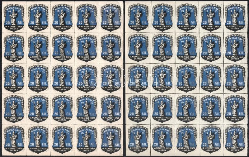 1915 Mikulás nap ‘A Nemzet-Háza javára’ 20f 50-es hajtott levélzáró ív + félív