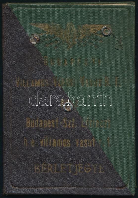 1916 Fényképes bérletjegy a Budapest-szentlőrinci helyi érdekű villamosvasútra beragasztott jeggyel, szép állapotban<a href="https://www.darabanth.com/hu/gyorsarveres/412/kategoriak~Mutargy-papirregiseg-egyeb/Okmanyok~500018/1916-Fenykepes-berletjeg