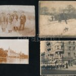 1917-1970 Vegyes fotó tétel, – Ferenc József (ma: Szabadsá) híd 1929, Vajdahunyad vára, Szőlőmunkások, Repülőgépgyári munkások, által felborított villamos kocsik, a 30 filléres szakaszjegy miatt 1917, búcsújárás? Fratelli és