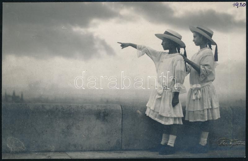 1920 Budapest, Kerny István (1879-1963) budapesti fotóművész hagyatékából 1 db évszámozott vintage fotó, hidegpecséttel jelzett, a képen a leányai (Gizella és Jolán) láthatók, 10,8×17 cm<a href="https://www.darabanth.com/hu/nagyaukcio/38/kategoriak~