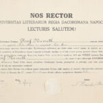 1921, 1933 Kolozsvár, a kolozsvári I. Ferdinánd Király Tudományegyetem által kibocsátott latin nyelvű jogi doktori oklevél magyar személy részére + érettségi bizonyítvány, illetékbélyegekkel