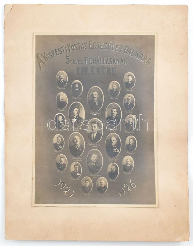 1926 A Kispesti Postás Egyesület Dalkara emlék tabló kartonon 30×24 cm<a href="https://www.darabanth.com/hu/gyorsarveres/415/kategoriak~Fotomuveszet/Foto~500021/1926-A-Kispesti-Postas-Egyesulet-Dalkara-emlek-tablo-kartonon-30×24-cm~II2599056/?utm_so