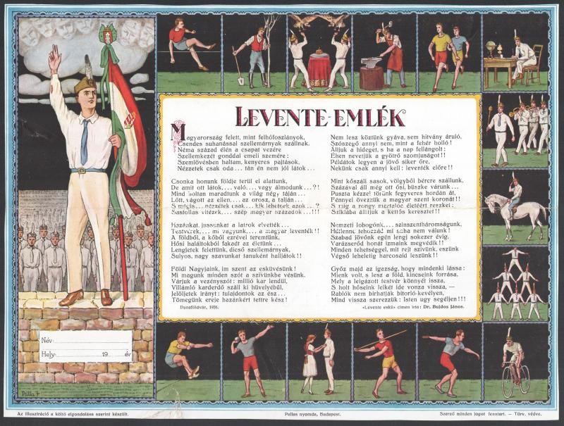 1926 Dunaföldvár, Levente emlék – verses emléklap, szakadással, hajtott
