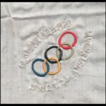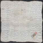 1928 ‘IX. Olympiad 1928 St. Moritz Amsterdam’ feliratú és olimpiai öt karikás hímzésű selyem zsebkendő, hajtásnyomokkal, foltos, kis lyukkal, 21×21 cm<a href="https://www.darabanth.com/hu/nagyaukcio/38/kategoriak~Mutargy-szobor-papirregiseg/Tortenel