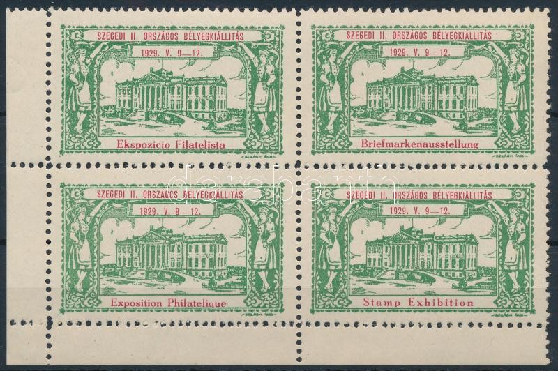 1929 Szegedi II. Országos Bélyegkiállítás levélzáró négyestömb / label block of 4<a href="https://www.darabanth.com/hu/nagyaukcio/38/kategoriak~Kulfoldi-filatelia-es-postatortenet/Parafilatelia~15579/1929-Szegedi-II-Orszagos-Belyegkiallitas-levelzar