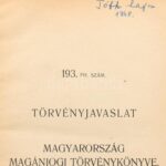 193. Fh. Szám. Törvényjavaslat. Magyarország magánjogi törvénykönyve. Vác,én.(cca 1928.),Váci Kir. Országos Fegyintézet Könyvnyomdája, 577 p. Kopott egészvászon-kötésben, ceruzás bejelölésekkel, jegyzetekkel, ex libris-szel,