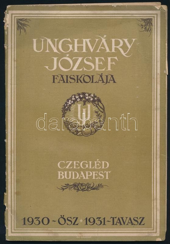 1930/31 Unghváry József faiskolája Főárjegyzék XXXVI. évfolyam Cegléd 75p. (Sérült állapotban). Borítót tervezte: Gönczi Gebhardt Tibor<a href="https://www.darabanth.com/hu/gyorsarveres/416/kategoriak~Mutargy-papirregiseg-egyeb/Nyomtatvanyok~1000002