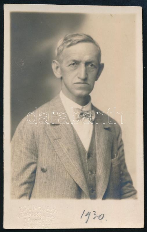 1930 Férfi portréja, hidegpecséttel jelzett fotó Brunhuber budapesti műterméből, 11×7 cm<a href="https://www.darabanth.com/hu/gyorsarveres/417/kategoriak~Fotomuveszet/Foto~22/1930-Ferfi-portreja-hidegpecsettel-jelzett-foto-Brunhuber-budapesti-muterm