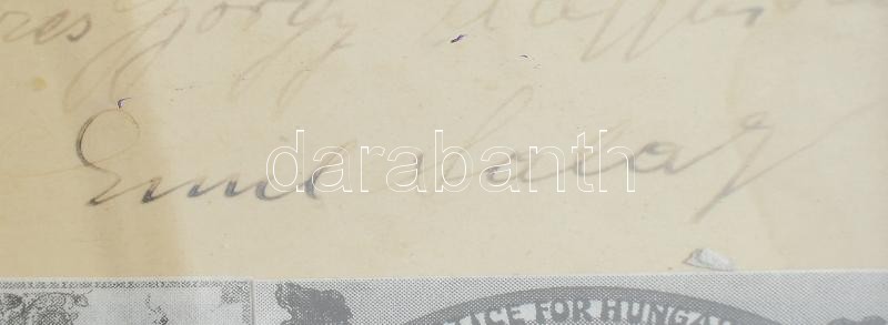 1931 Justice for Hungary óceánrepülőket ábrázoló képeslap a két pilóta: Endresz György és Magyar Sándor, valamint a repülőgépet és az utat finanszírozó Szalay Emil autográf aláírásával, üvegezett képkeretben. 16×12 cm<a href="https://www.darabanth.c
