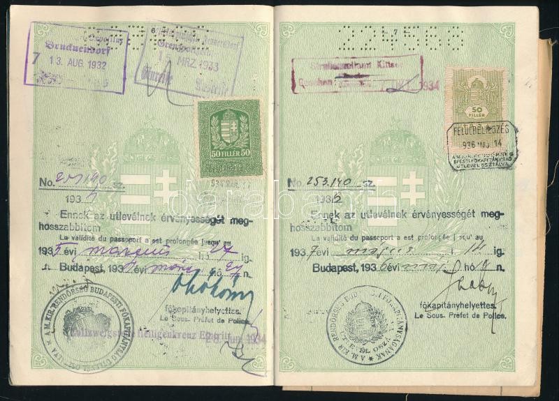1931 Magyar Királyság által kiállított fényképes útlevél tisztviselő számára / Hungarian passport<a href="https://www.darabanth.com/hu/gyorsarveres/417/kategoriak~Mutargy-papirregiseg-egyeb/Okmanyok~19/1931-Magyar-Kiralysag-altal-kiallitott-fenykepe