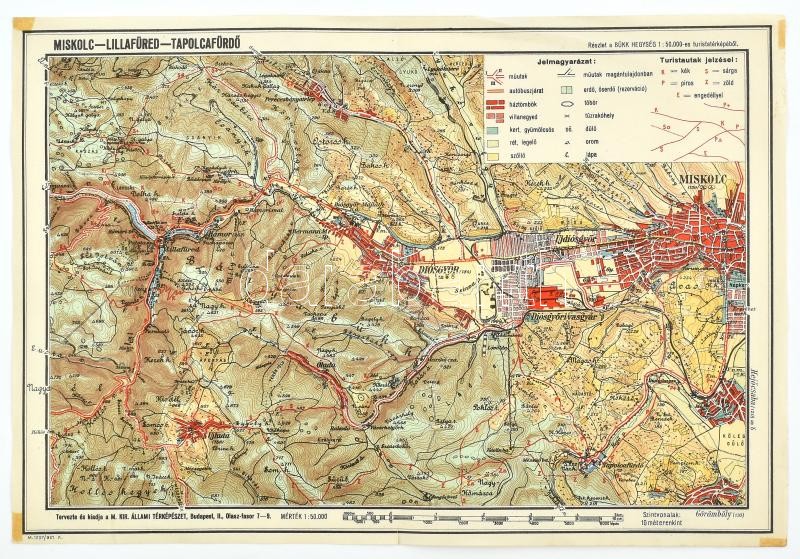 1931 Miskolc Lillafüred Tapolcafürdő turista térkép 32×23 cm