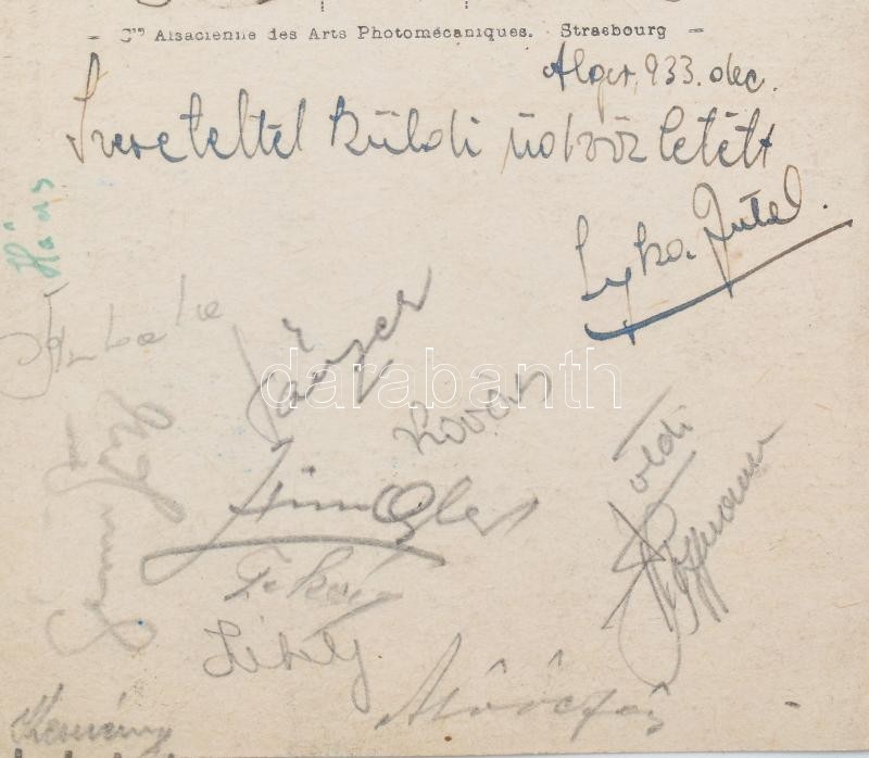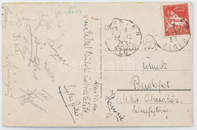 1933 FTC algériai túrájáról hazaküldött képeslap aláírásokkal<a href="https://www.darabanth.com/hu/nagyaukcio/38/kategoriak~Mutargy-szobor-papirregiseg/Alairas~15961/1933-FTC-algeriai-turajarol-hazakuldott-kepeslap-alairasokkal~II2614479/?utm_source