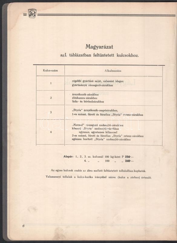 1935 Soproni vasárugyár képes árjegyzék. Lágyöntésű kulcsok. 54p.<a href="https://www.darabanth.com/hu/gyorsarveres/415/kategoriak~Mutargy-papirregiseg-egyeb/Reklam~500022/1935-Soproni-vasarugyar-kepes-arjegyzek-Lagyontesu-kulcsok-54p~II2608120/?utm