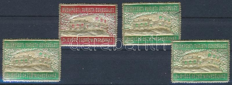 1936. Budapesti Turista Egyesület. Dr. Győző Dezső Menedékház 4 db aranyfóliás dombornyomott levélzáró