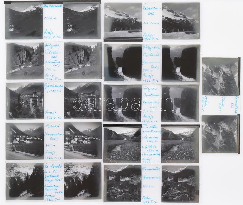 1936 Leventinatal, Andermatt, Unserental látnivalói, kis doboznyi üveglemez pozitív, 4,5×10,5 cm