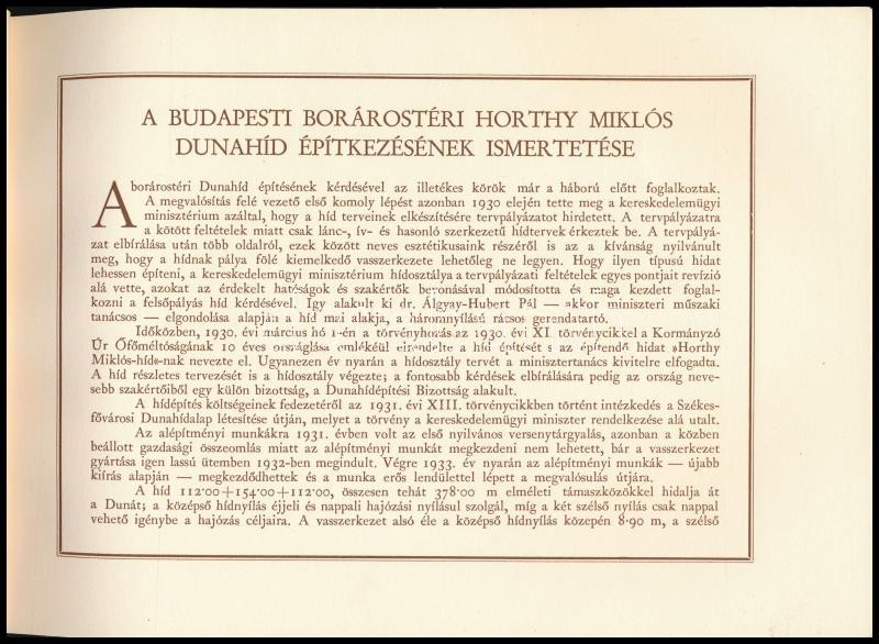 1937 Horthy Miklós híd 1933-1937, építették: Zsigmondy Béla Rt., Magyar Kir. Állami Vas-, Acél- és Gépgyárak, képekkel illusztrált album