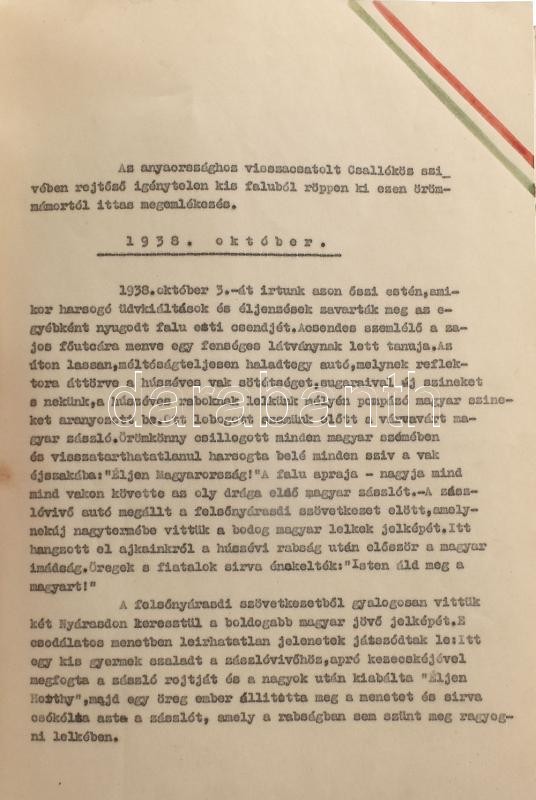 1938-1939 Két Nyárasd Felszabadult 1938. november 7. ‘Az anyaországhoz visszacsatolt Csallóköz szívében rejtőző igénytelen kis faluból röppen ki ezen örömmámortól ittas megemlékezés. …’ 1938. októbertől 1938. decemberig tartó napló a visszacsatolásról A