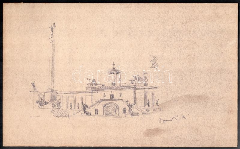 1938-as Eucharisztikus Világkongresszus Hősök terei főoltáráról, díszletéről készült 5 db látványterv. Nyomat. karton. Olvashatatlan jelzéssel a nyomaton. 20×32 cm.<a href="https://www.darabanth.com/hu/gyorsarveres/417/kategoriak~Mutargy-papirregise