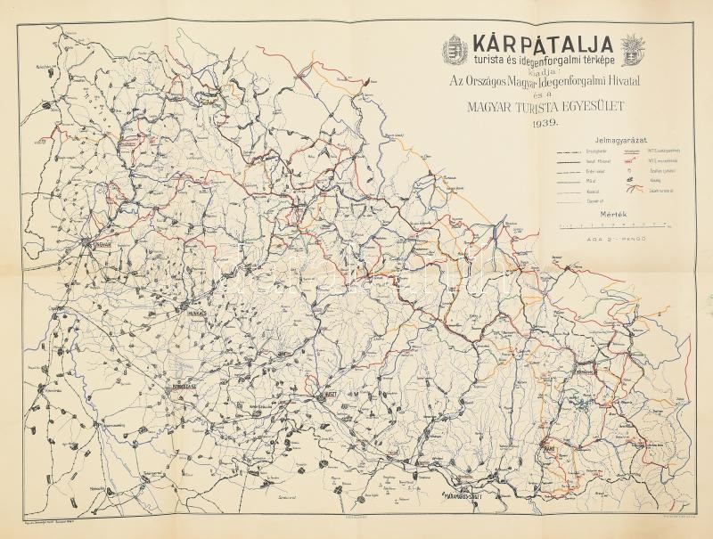 1939 Kárpátalja turista és idegenforgalmi térképe, kiadja az Országos Magyar Idegenforgalmi Hivatal és az Magyar Turista Egyesület, 54×73 cm