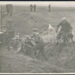 1939 KTT motorkerékpár-verseny, Domján K. és Rusovszky versenyzők a pályán, hátoldalán feliratozott fotólap, kis törésnyomokkal, 14×9 cm / Motorcycle race, photo, 14×9 cm<a href="https://www.darabanth.com/hu/nagyaukcio/38/kategoriak~Mutargy-szobor-p