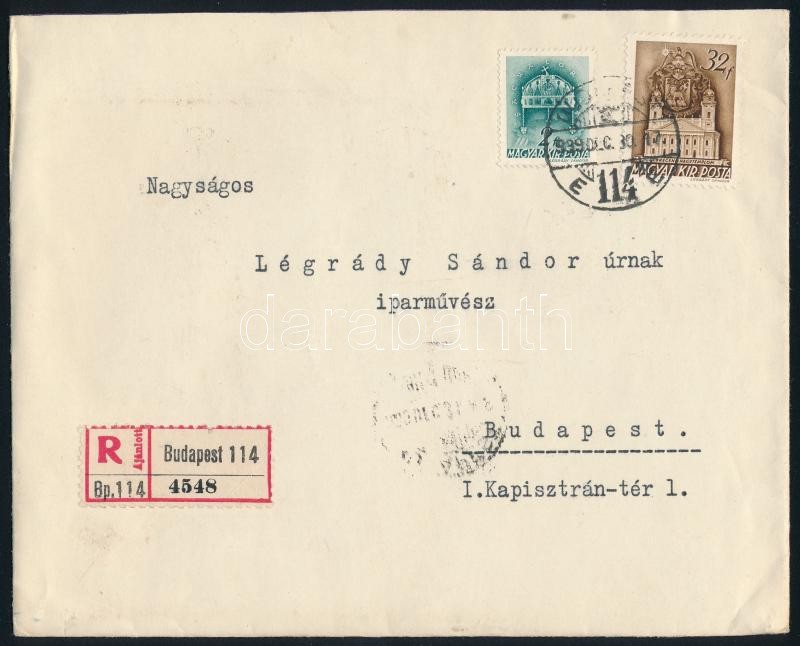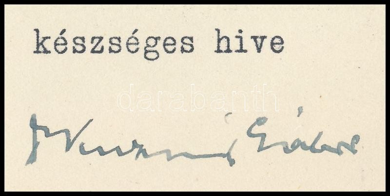 1939 Kuzmich Gábor (1886-1958) a M. Kir. Posta vezérigazgatójának, a M. Kir. Kereskedelem- és Közlekedésügyi Minisztérium Államtitkárának gépelt levele Légrády Sándor (1906-1987) grafikus részére, hogy a megjelent bélyegek tiszteletpéldányait megküldi, fe