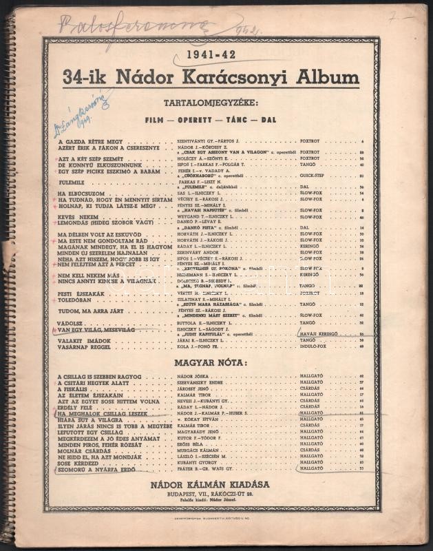 1941 34. Nádor karácsonyi album. Kottafüzet. 64p.