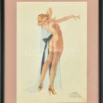 1941 Alberto Vargas (1896-1982): Pin-up girl az Esquire amerikai magazinból, márciusi naptár lap. Ofszet nyomat, papír. Varoa Esq. jelzéssel. Lap alsó fele kissé foltos. Üvegezett fa keretben, 34×22,5 cm<a href="https://www.darabanth.com/hu/gyorsarv