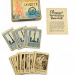 1942 Magyar történelmi quartett. IX-XX. század. Régi társasjáték, kompletten, 48 db kártyával, útmutatóval. Összeáll.: Liebner Iván. Eredeti, Pályi Jenő (1903-1953) grafikájával illusztrált dobozban. Korának megfelelő állapotban (a dobozon és az útmutatón