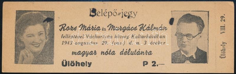 1943 Belépőjegy Rozs Mária és Murgács Kálmán magyar nóta délutánjára