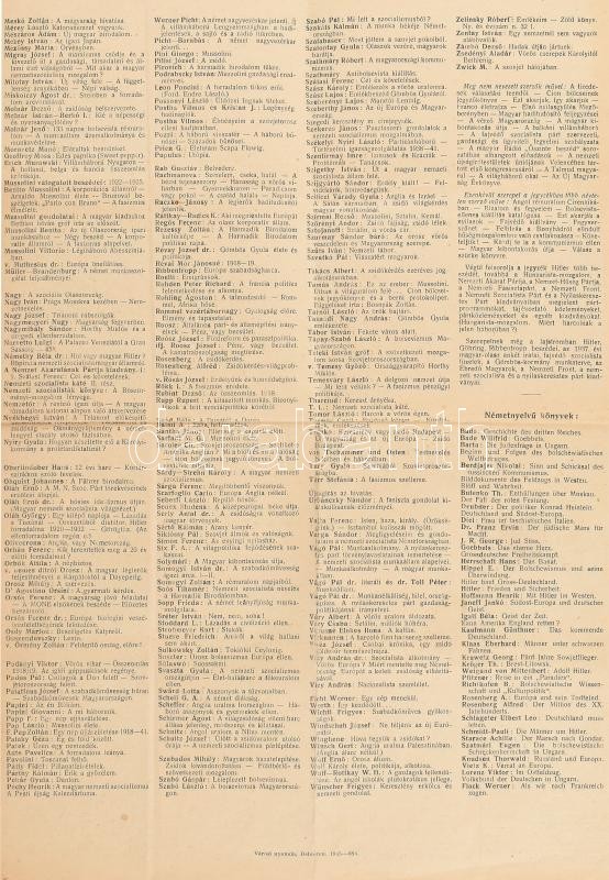 1945 A fasisztairányú és szovjetellenes könyvek jegyzéke. Két oldalas nyomtatvány. 30×44 cm<a href="https://www.darabanth.com/hu/gyorsarveres/415/kategoriak~Mutargy-papirregiseg-egyeb/Nyomtatvanyok~1500002/1945-A-fasisztairanyu-es-szovjetellenes-kon
