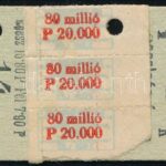 1946 Vasúti menetjegy a pengő hiperinflációjának időszakából