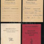 1948-1949 4 db igazolvány (Magyar Dolgozók Pártja látogatási jegy, Pártiskolai bizonyítvány, Magyar Kommunista Párt tagsági könyv)<a href="https://www.darabanth.com/hu/gyorsarveres/413/kategoriak~Mutargy-papirregiseg-egyeb/Okmanyok~500018/1948-1949-