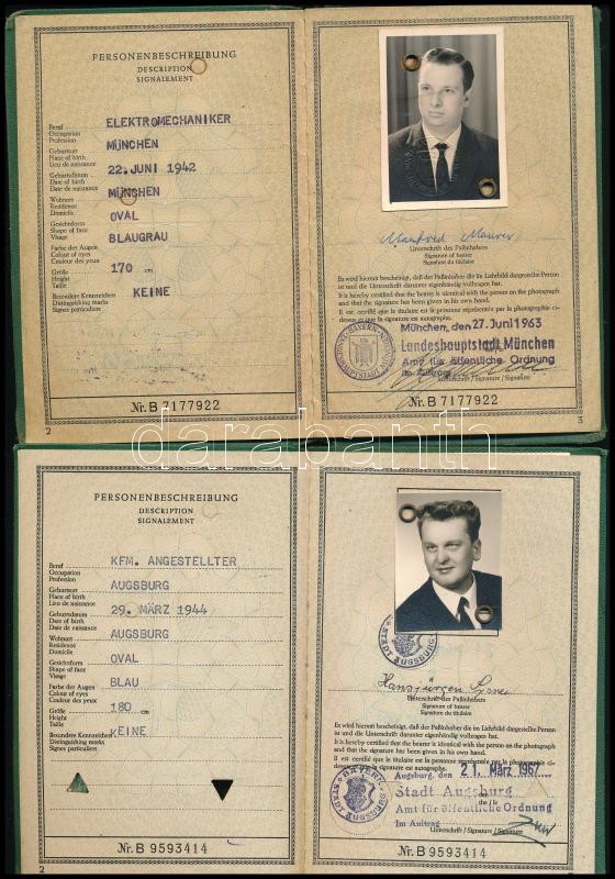 1963,1967 Bundesrepublik Deutschland 2 db útlevél / German passports<a href="https://www.darabanth.com/hu/gyorsarveres/411/kategoriak~Mutargy-papirregiseg-egyeb/Okmanyok~505019/1963-1967-Bundesrepublik-Deutschland-2-db-utlevel-German-passports~II255