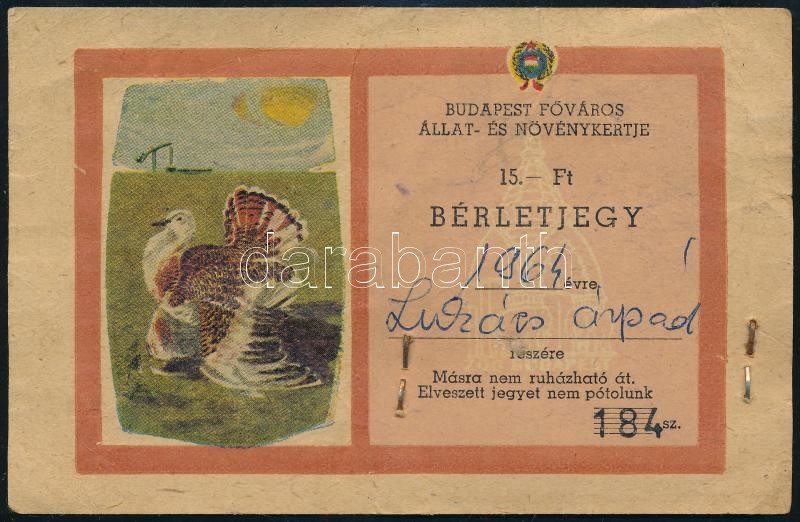 1964 Bérletjegy Budapest Főváros Állat- és Növénykertjébe