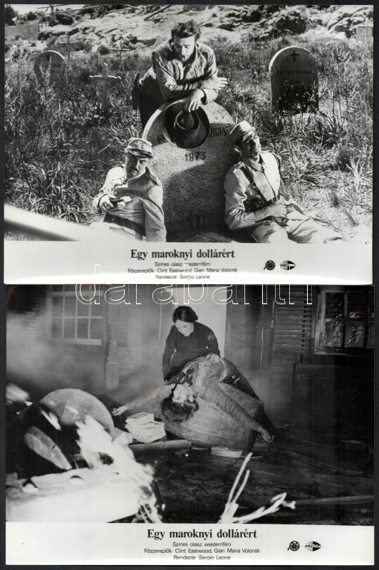 1965 ,,Egy maroknyi dollárért’ című olasz westernfilm jelenetei és szereplői (köztük Clint Eastwood és Gian Maria Volonté), 11 db vintage produkciós filmfotó, 18×24 cm<a href="https://www.darabanth.com/hu/gyorsarveres/415/kategoriak~Fotomuveszet/Fot