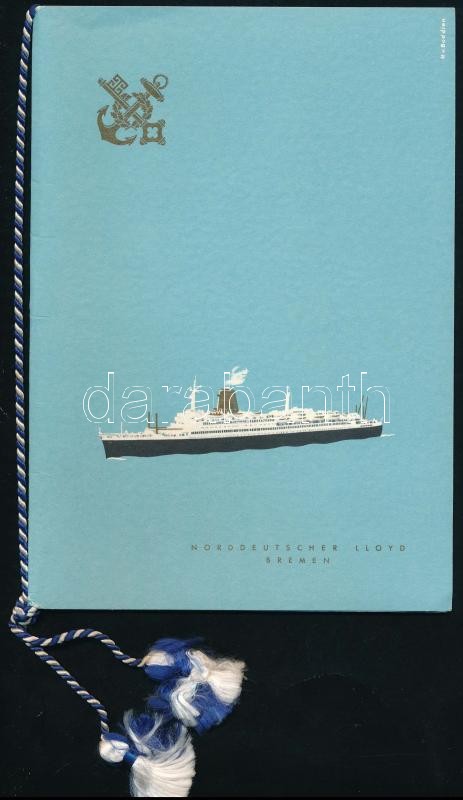 1966 Norddeutscher Lloyd Bremen étlapja és a turistaosztály napi programja, 2 db<a href="https://www.darabanth.com/hu/gyorsarveres/413/kategoriak~Mutargy-papirregiseg-egyeb/Hajozas-Balaton~500027/1966-Norddeutscher-Lloyd-Bremen-etlapja-es-a-turistao