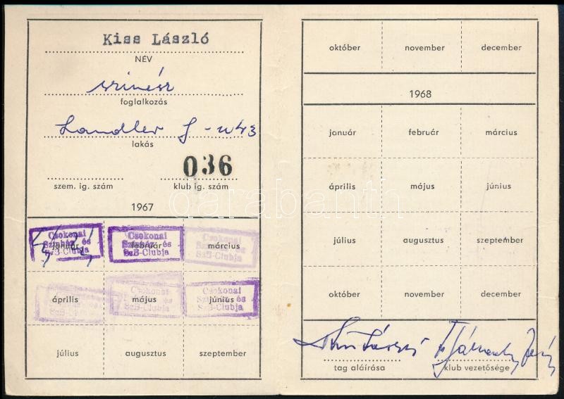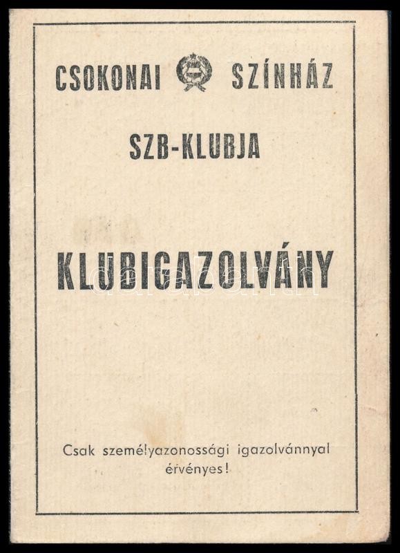 1967 Debreceni Csokonai Színház klubigazolványa színész részére