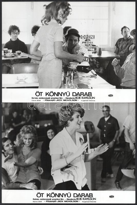 1970 ,,Öt könnyű darab’ című amerikai film jelenetei és szereplői, 7 db vintage produkciós filmfotó, 18×24 cm<a href="https://www.darabanth.com/hu/nagyaukcio/38/kategoriak~Mutargy-szobor-papirregiseg/Foto~15584/1970-Ot-konnyu-darab-cimu-amerikai-fil