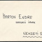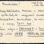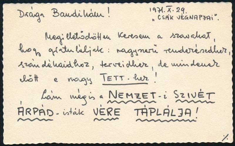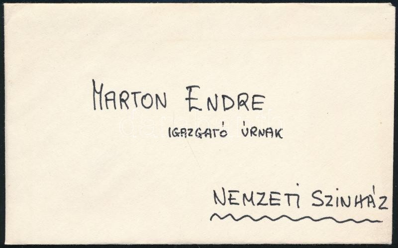 1971 Sinkovits Imre (1928-2001) színész nagyon meleg hangvételű gratuláló levele Marton Endre rendezőnek a ‘Csák végnapjai’ című darab nemzeti színházbeli bemutatója alkalmából (‘Lám mégis a Nemzet-i Szívét Árpád-isták vére