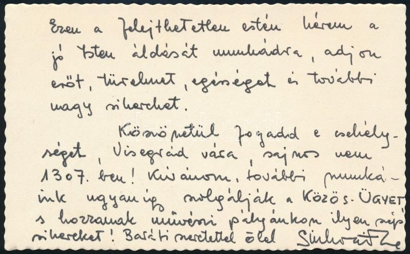 1971 Sinkovits Imre (1928-2001) színész nagyon meleg hangvételű gratuláló levele Marton Endre rendezőnek a ‘Csák végnapjai’ című darab nemzeti színházbeli bemutatója alkalmából (‘Lám mégis a Nemzet-i Szívét Árpád-isták vére táplálja!’), saját kezű aláírás