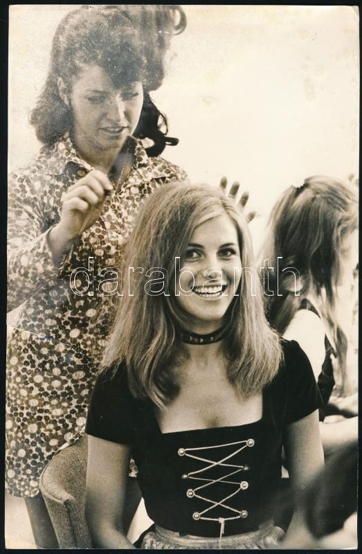 1972 München, Uschi Badenberg, az 1972-es müncheni olimpiai játékok ‘Miss Olympia’-ja, feliratozott fotó, kisebb szakadással, kopásnyomokkal, 24,5×16 cm / Uschi Badenberg, ‘Miss Olympia’ of the 1972 Munich Olympic Games, photo, with small