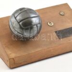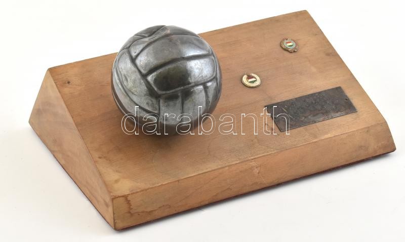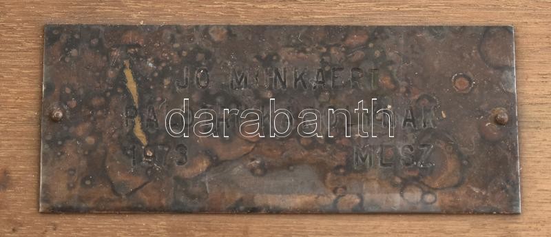 1973 A Magyar Labdarúgók Szövetsége által adományozott kitüntetés Palotai Károly (1935-2018) olimpiai bajnok magyar válogatott labdarúgó, hazai és nemzetközi (MLSZ, FIFA) labdarúgó-játékvezető részére. Fém, fa alapon. A táblán felirat: ‘Jó munkáért Palota