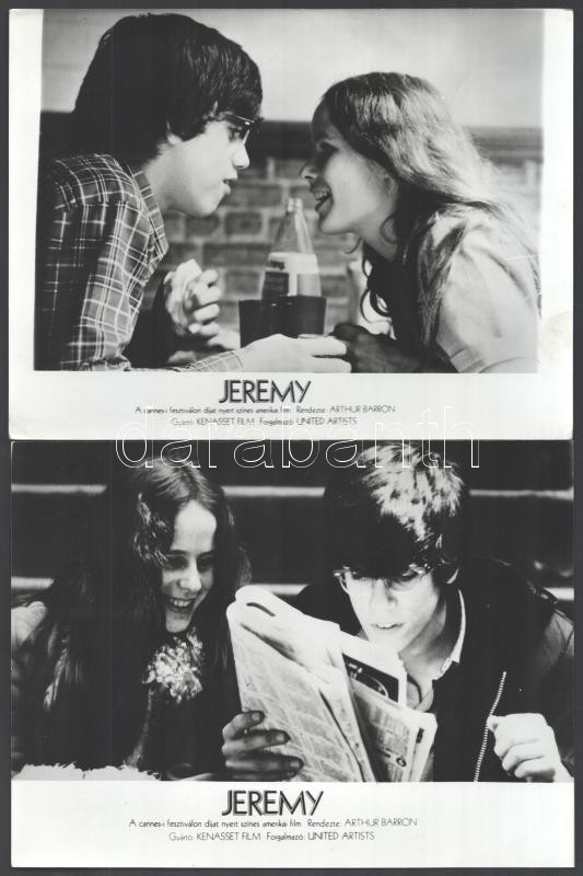 1973 ,,Jeremy’ című amerikai film jelenetei és szereplői, 13 db vintage produkciós filmfotó, ezüst zselatinos fotópapíron, kisebb – a használatból eredő – hibákkal,18×24 cm<a href="https://www.darabanth.com/hu/gyorsarveres/420/kategoriak~Fotomuvesze